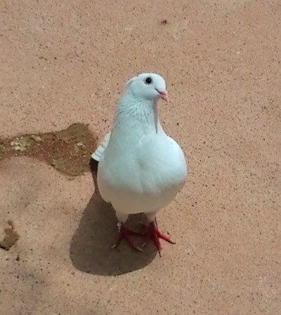 他にも、こんな粋な白いハトさんも。この子も突然スススーッと前に歩いてきて、こんな感じで小首傾げて見上げてくるんです。何だかとっても親近感が湧いてきたのでちょっと手を差出てみたら、何の抵抗もなく乗っかってくれましたー!嬉しい~~~~~♪